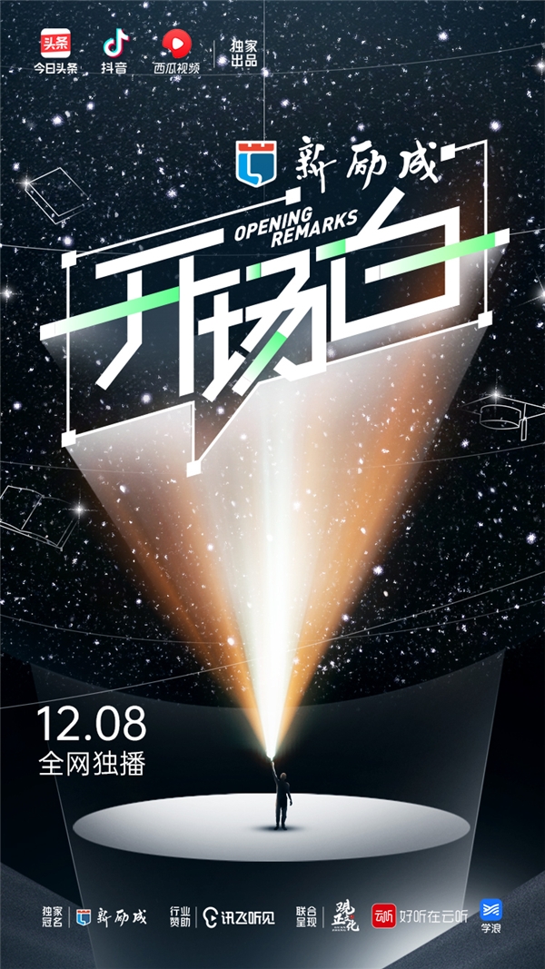 寒冬已至,文化热潮悄然卷席。由白岩松发起、新励成独家冠名的高品质文化演讲节目《开场白》将于12月8日在抖音、西瓜视频、今日头条等平台正式首播!《开场白》不仅汇集了白岩松、邓亚萍、俞敏洪、刘擎、王佩瑜、郦波、杨倩等众人期待已久的重量级嘉宾,还采用了演讲+观点battle的形式,以热点话题及文化大咖背景与全社会青年紧密对话。