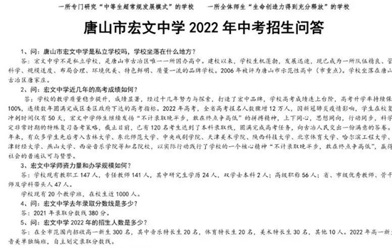 唐山市宏文中学2022年中考招生问答: