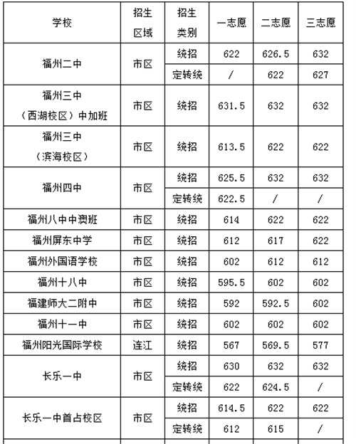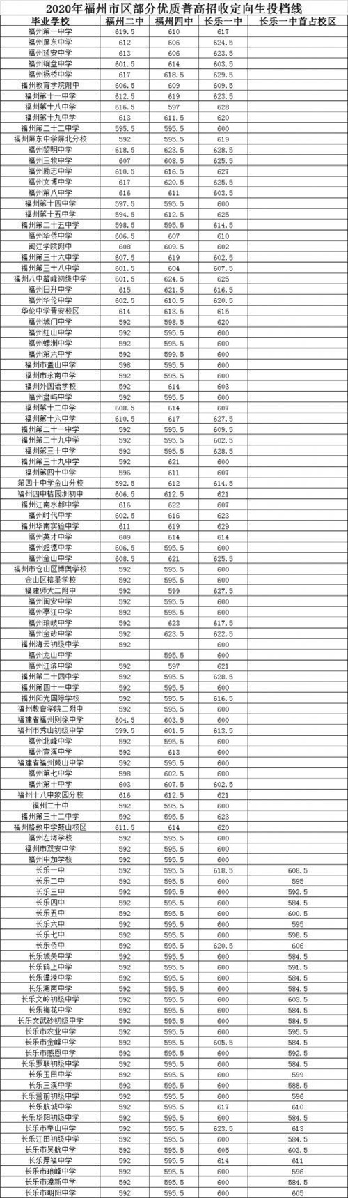 福州普高录取分数线2020 福州二中、四中、屏东出线
