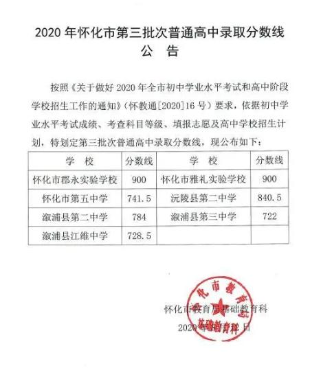 刚刚,怀化市教育局公布了本市中考第三批次录取分数线,其中郡永实验中学和雅礼实验中学均为900分,具体情况如下: