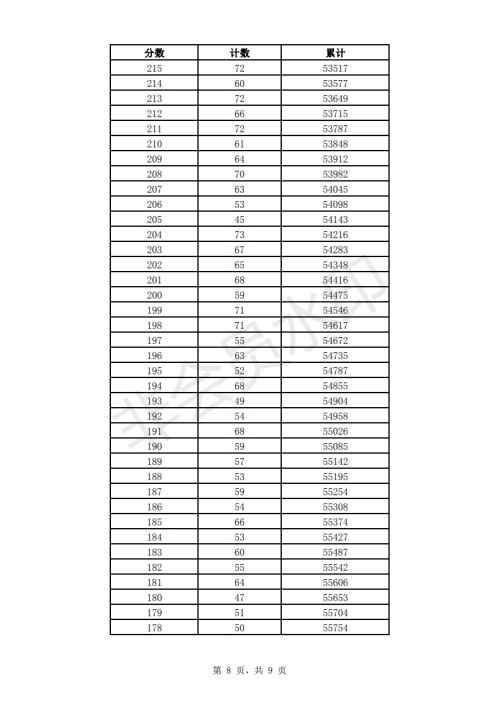 2019年济南市中考成绩一分一段表