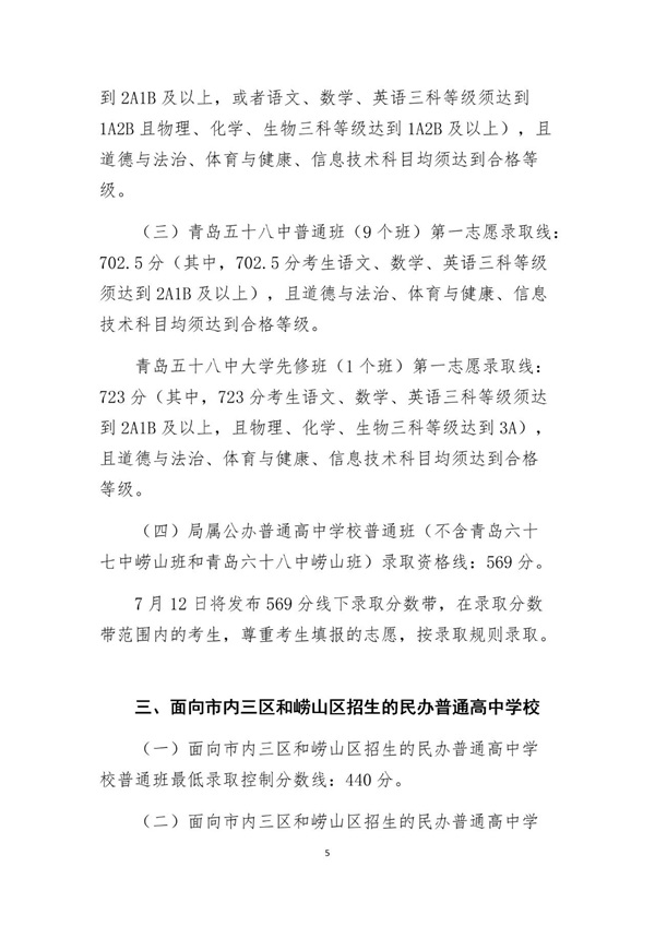 2019年青岛市初中学业水平考试(以下简称中考)成绩分数线公布:公办普高569分,二中702分!与去年相比普高分数线低40分