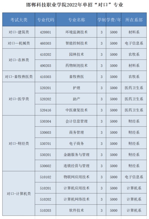 学院单独招生专业和招生计划详见省教育考试院公布的《2022年河北省普通高职院校单独考试招生计划》。